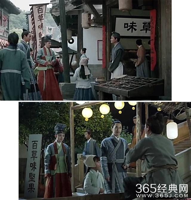 还有与“百草味坚果”齐头并进的“一叶子”和“百年老窖”...这么充满现代感的古代市集,亲切得让人想哭。