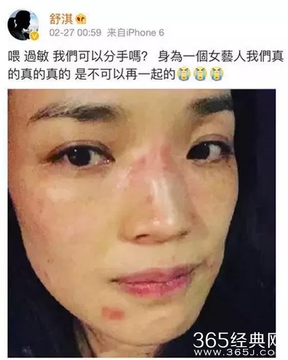 而且不仅如此,她还把自己的过敏照也大方的晒出来。