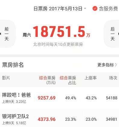 《摔跤吧!爸爸》在5月13日的排片已经增加至5.4万场,在排片大幅增加的同时,上座率已经狂涨至惊人的43%,单日报收9257万,票房占比过半。