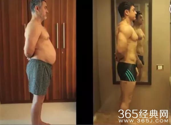 先说阿米尔本人,在一部电影中要扮演青年,中年和老年三个年龄段,而这三个年龄段的人物形象差别有很大,相信大家也已经看过一张图,就是下面这个,阿米尔先拍的老年,为此增重到194斤,体脂率高达37%,随后为了继续拍摄中年时候的状态,他开始健身,进行非人的魔鬼训练,经过四个月的时间,他已经把体脂率降到18.15%,半年之后,他就瘦回了原来的状态,整整25公斤,就这个数字就足够我顶礼膜拜!