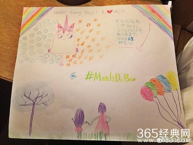 而且多多还给妈妈画了一幅画作为母亲节的礼物!