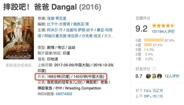 由印度“国宝”阿米尔·汗主演的口碑大片《摔跤吧!爸爸》,截至5月14日,中国大陆票房已破4亿,豆瓣评分高达9.3分,一时间获赞无数。