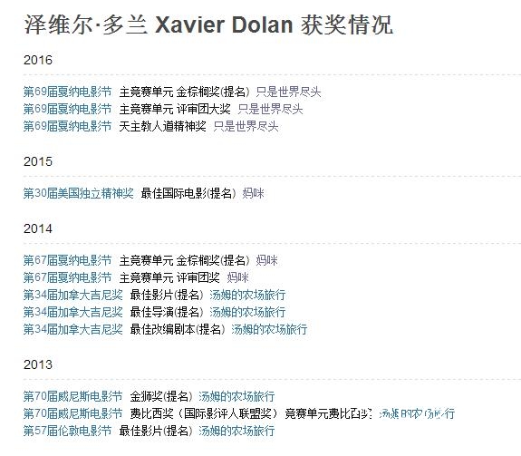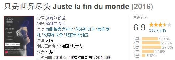 今年戛纳电影节,多兰指导的《只是世界尽头》在争议声中,再次获评审团大奖,日前,加拿大宣布选送泽维尔·多兰执导的法语电影《只是世界尽头》参加明年的奥斯卡角逐。