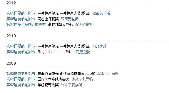 2009年《我杀了我妈妈》戛纳获三个奖;