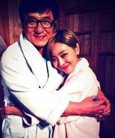 成龙的韩国女星nashar1合影时,两人穿着浴袍,紧紧相拥,笑得很甜蜜