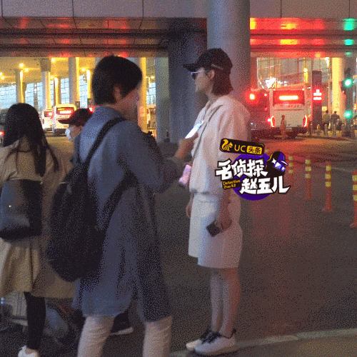 心情很好的袁珊珊,一边走路一边和助理聊个不停,看见有粉丝拍照也是面带微笑。