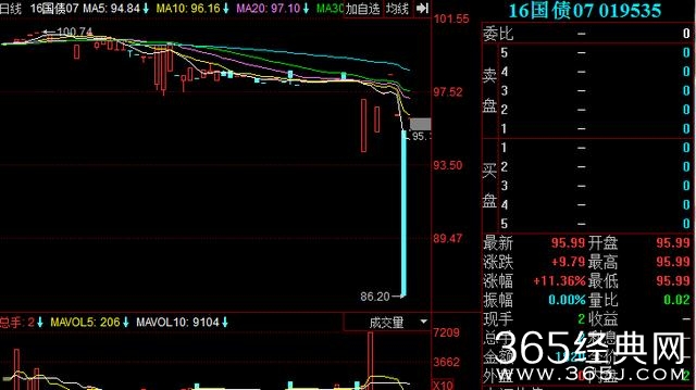 下图为16国债07近日走势图,昨日其跌幅高达10%,今日则涨11%。