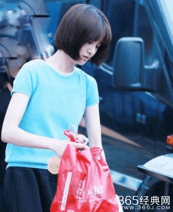 身边没有助手的爽妹子,自提红色购物袋,手上拿着小梳子,身穿蓝色上衣和黑色百褶裙的她更显青春靓丽。
