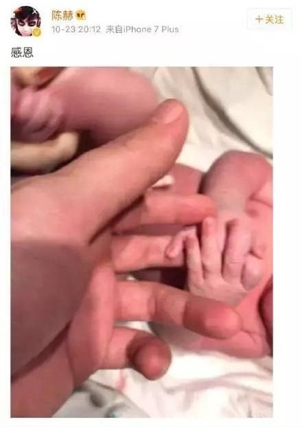 本来大家都以为是乌龙消息的时候,结果10月份的时候,陈赫自己在微博爆了,生了!还是个女儿!