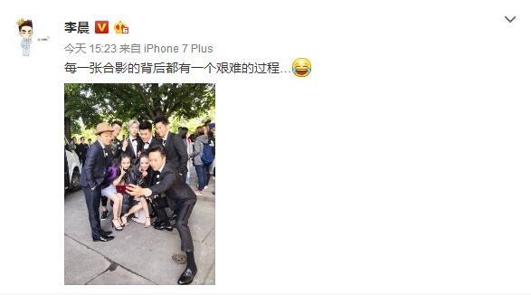 沉迷和范冰冰秀恩爱的李晨都被惊动了,发了一张他们八个人一起拍合照的照片,说“每张合影的背后都有一个艰难的过程”,疑似是在讽刺粉丝们戏多。
