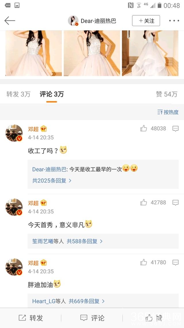 还列举了很多邓超和迪丽热巴在微博评论得火热的例子,说邓超在孙俪微博下面都没有这么积极。