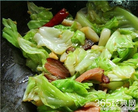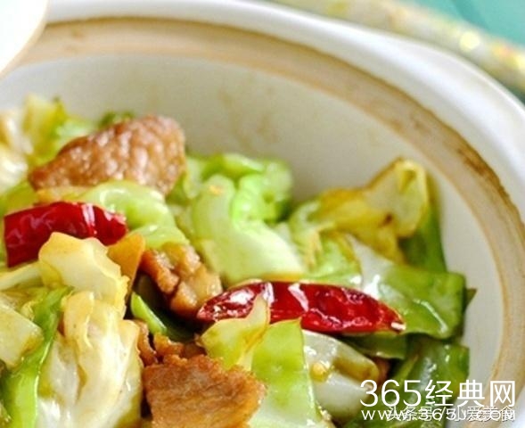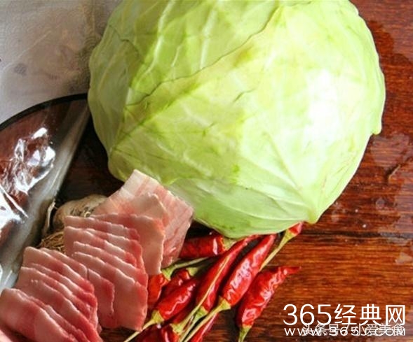 食材:包菜半颗、五花肉适量、干辣椒、蒜