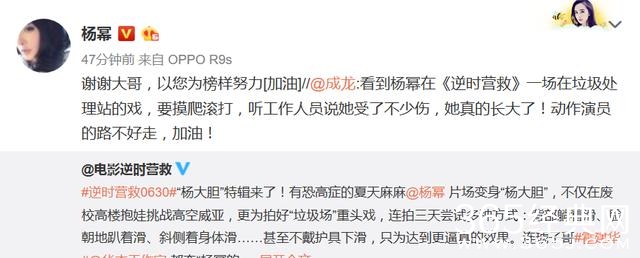 而该片监制成龙也第一时间发微博鼓励杨幂。