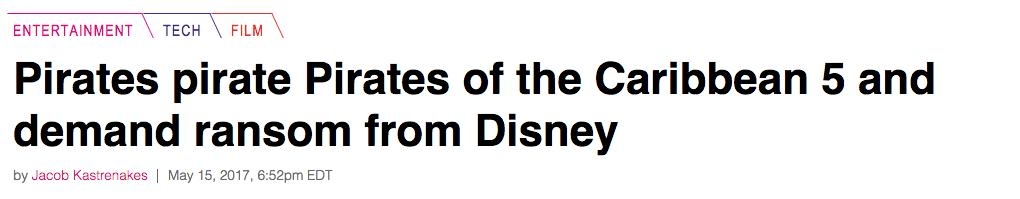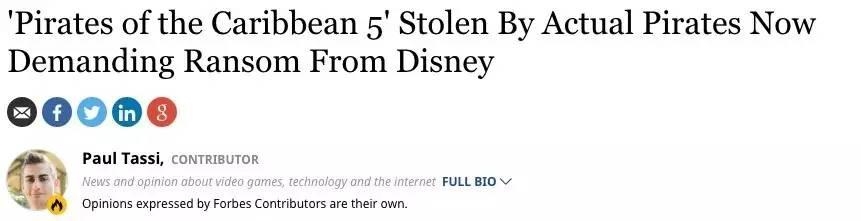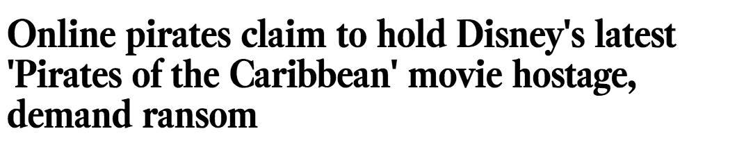 《‘加勒比海盗5’被真·盗匪盗走,并向迪士尼索要赎金》