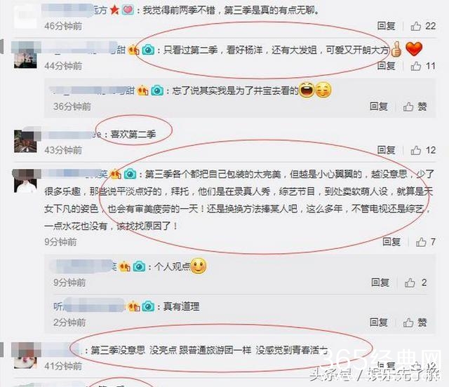 有网友表示,还是爱看前两季。虽然通俗说就是有互撕才精彩,但是这样平平淡淡没有波澜,确实是引不起观众的兴趣的。
