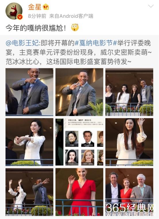 近日范冰冰现身在戛纳电影节,成为主竞赛单元评委,没想到金星转发此微博,但没有好意而说:今年的“嘎”纳很尴尬!不知道金星是不是激动的手一哆嗦,戛纳写成了嘎纳,还是故意要讽刺