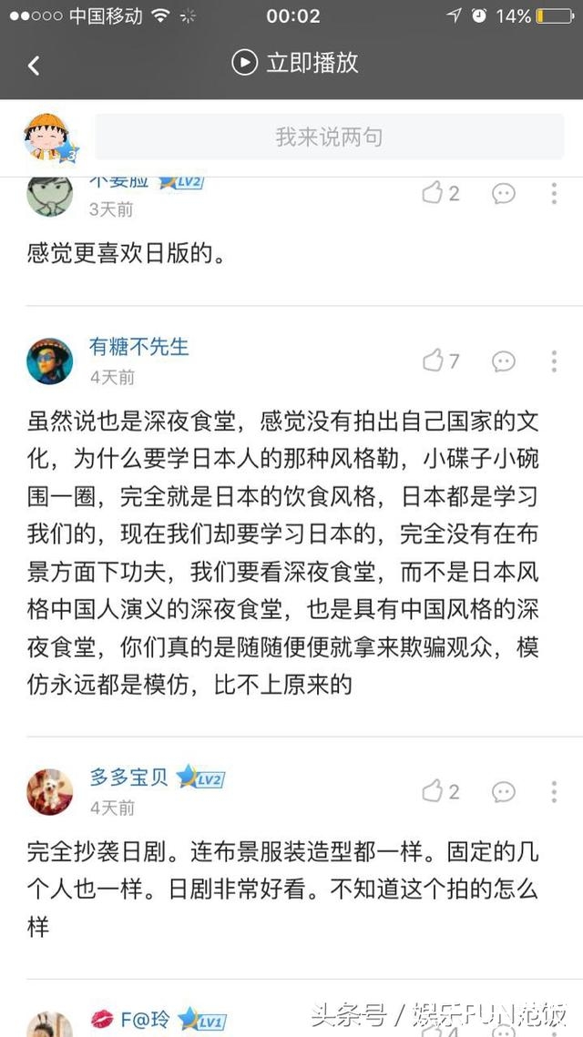 当然也有网友觉得拍的不错,很期待。因为中国版的《深夜食堂》可是汇集了一众大牌明星或者当红偶像啊!!