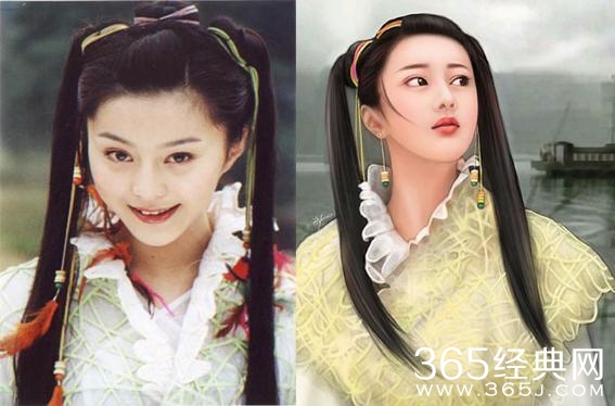 范冰冰出道早期也是清纯得像朵白莲花,扎着古装双马尾,少女气息十足,同样的外型,手绘版本虽美,却不及范冰冰自己一分。