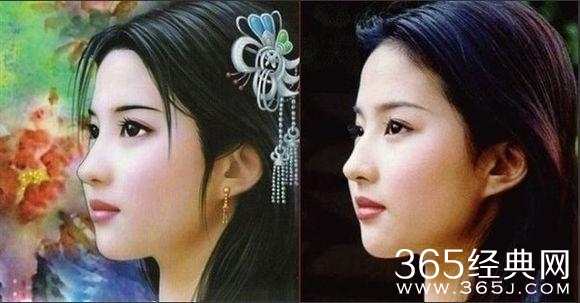 有着神仙姐姐之称的刘亦菲,本就美得跟画里走出来的女孩普通,同样是侧颜,即使是有了头饰和耳环的装点,手绘版本照旧美不过真人版。