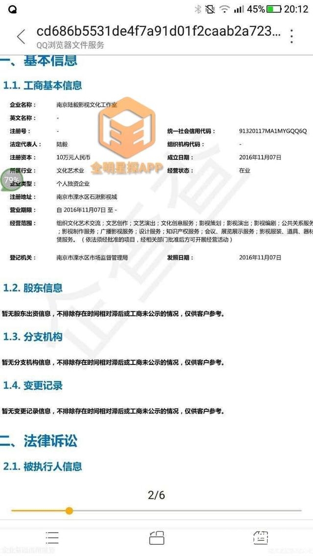 根据网友爆料,陆毅成立的公司名为南京陆毅影视文化工作室,注册资金为十万元。根据工商注册信息显示这家公司成立于2016年11月7日,想必此次陆毅鲍蕾来南京应该是处置惩罚公司相关事宜↓↓↓