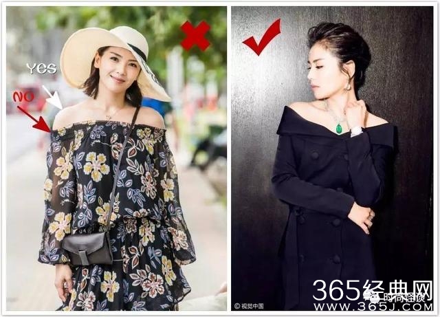 手臂粗的话,一字肩应该卡在肩膀上,而不是手臂上。稍带V字型能更好地拉长脖子。