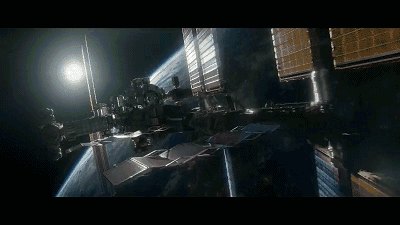 [异星觉醒]开场就是一个约10分钟的长镜头,给主要人物和空间站的构造及环境做了交待。这不由得让人想起[地心引力]里那些一气呵成优美舒畅的太空长镜头: