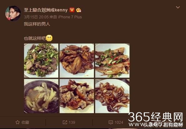 结果你别说在微博了,刘洲成还真晒过自己克服狭小厨房的重重阻难,最后做出来的菜,多励志啊!