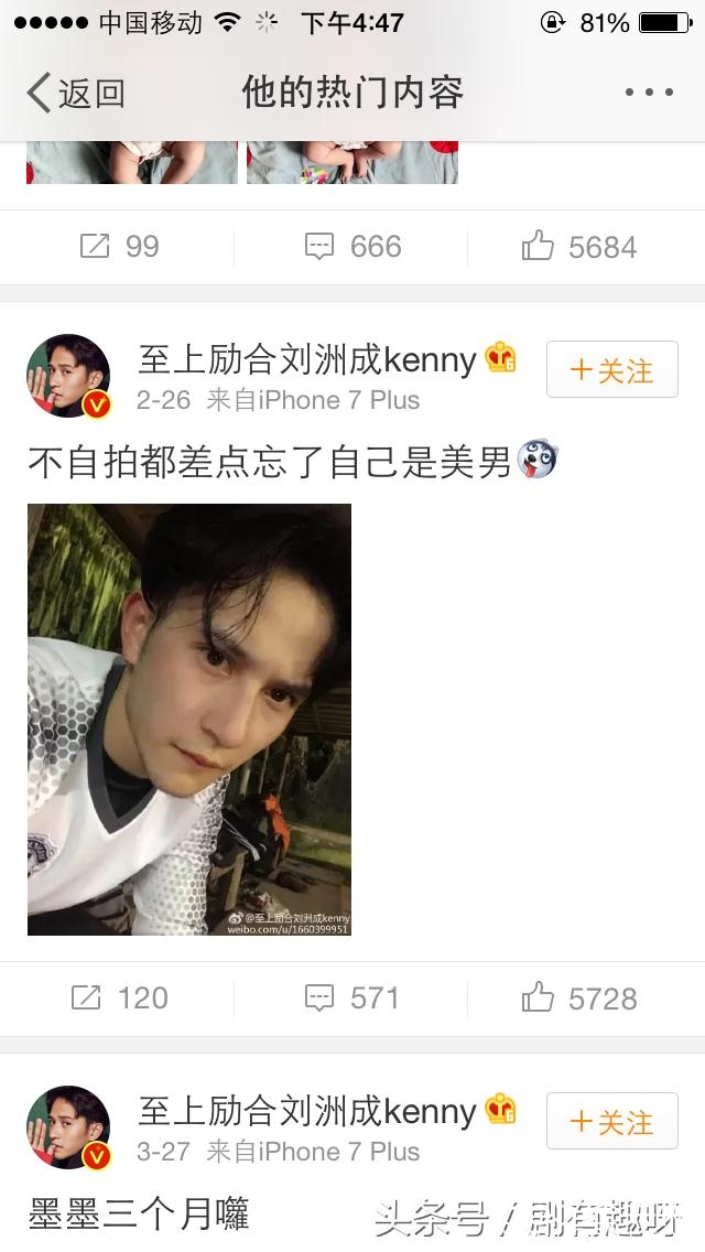 空闲时间,刘洲成喜欢逛逛冠希老师的微博,顺便点点赞。