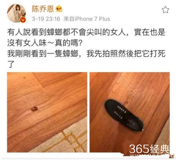 前段时间陈乔恩在微博上晒出打蟑螂的图片,不过网友们对乔恩的汉子属性并没有在意,反而对她打蟑螂的鞋子很是注意。