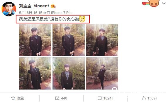近日,“蛇精男”刘梓晨在微博中上传了一组照片,并在正文说道:“我美还是风景美?摸着你的良心说”