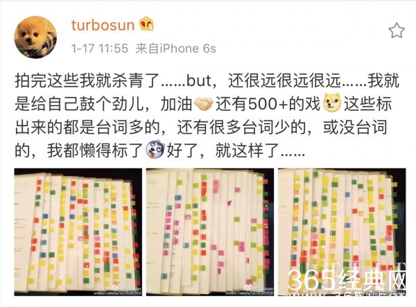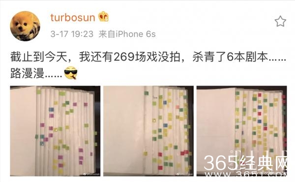 随着时间的推移,剧本数在减少,但是不变的依旧是剧本上密密麻麻的彩色标签,有很多网友留言说,或许这就是演员和明星的区别。