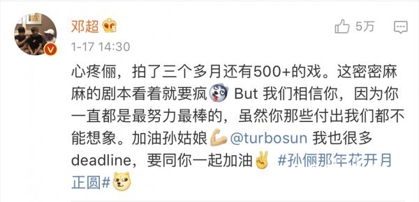 邓超也不只一次在自己的微博上晒出过孙俪的剧本,照片中,剧本上密密麻麻的彩色笔、用分装袋订好,而一旁的孙俪则是累了,趴在桌上小憩。
