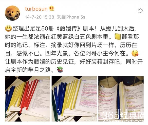 孙俪对剧本的执着一直是有目共睹,在拍《那年花开月正圆》时,她就在微博PO出贴满五颜六色、密密麻麻标签的剧本。
