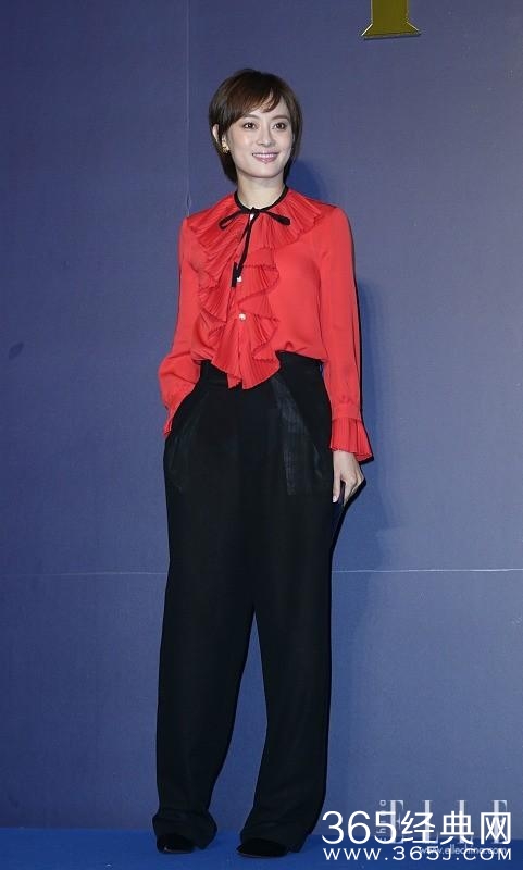 之前参加何润东的婚礼,孙俪身穿Gucci红色荷叶边蝴蝶结衬衫,下搭黑色阔腿裤,红黑配庄重的同时也是用高腰阔腿裤拉伸了曲线。