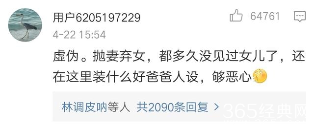 而刘洲成的最后一条微博,还停留在3月8日,照片内容是晒娃秀父爱,微博底下的一条评论这样写道:“虚伪。抛弃妻女,都多久没见过女儿了,还在这里装什么好爸爸人设,够恶心“。评论日期是4月22日,在林苗发表声明之前。而且这个号没有发表任何微博,是小号。所以可见这个号应该是林苗,但应该是还想挽回二人的关系,所以没有公开。