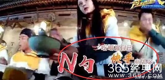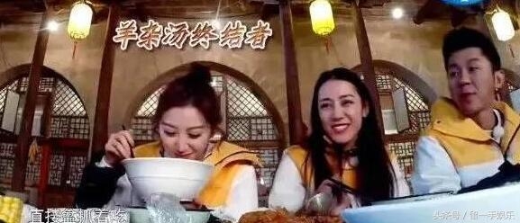 鹿晗问热巴怎么这么多羊杂汤的时候,导播专门给了一个热巴羊杂汤盛了N勺的镜头,当然字幕如下图,让大家觉得热巴就是一吃货