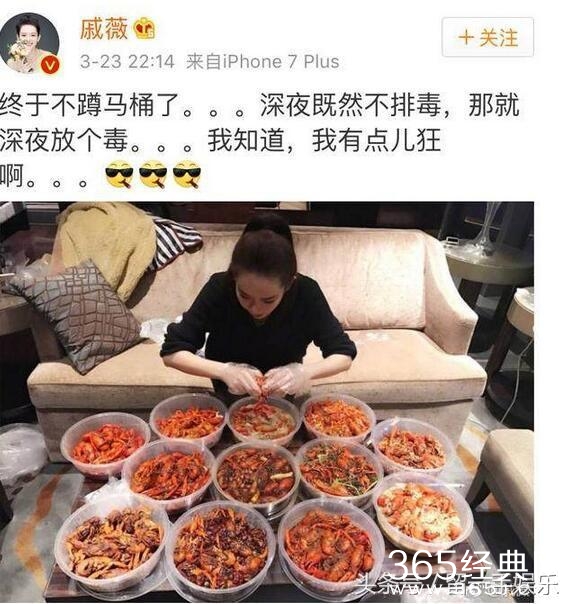 但是之后就被那个长得像李易峰的助理出卖了……原来是戚薇点给工作人员吃的,自己只是跟虾拍个合影……
