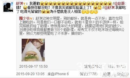 说起吃货,还有一位为了证明自己是真吃录视频的明星,就是舒淇,赵薇在微博喊话舒淇,说她没吃。结果舒淇就录了吃东西的视频力证,女神也真是较真呀,很可爱对不对?不过像舒淇那样总是晒素颜的女星,相信她是耿直的,说吃了就一定是吃了的~