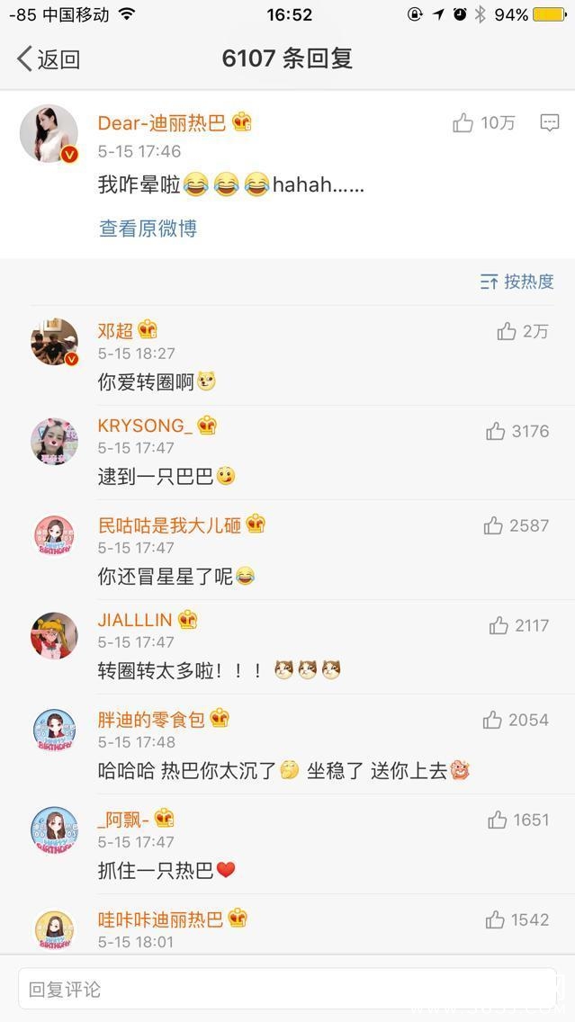 迪丽热巴和杨颖都评论了此微博,然而看看网友分别对她们俩人的回复就会发现,简直是天差地别。迪丽热巴的评论是:我咋晕啦。