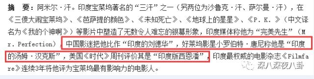 现在看全球的表现,阿米尔汗现在加冕了印度的刘德华,印度的汤姆克鲁斯,印度的西恩潘。好像赢了哦。