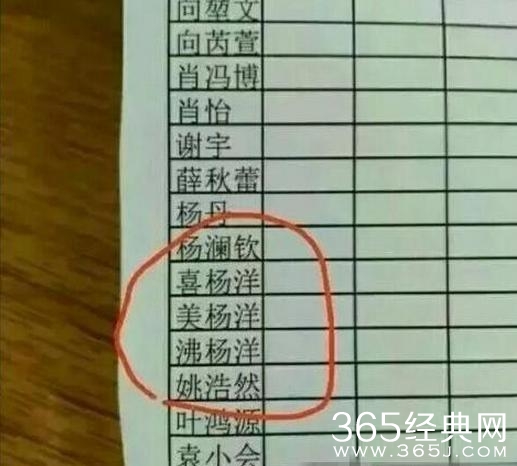 班里有三个人叫杨洋,老师是这样区分的,喜杨洋,美杨洋,沸杨洋!