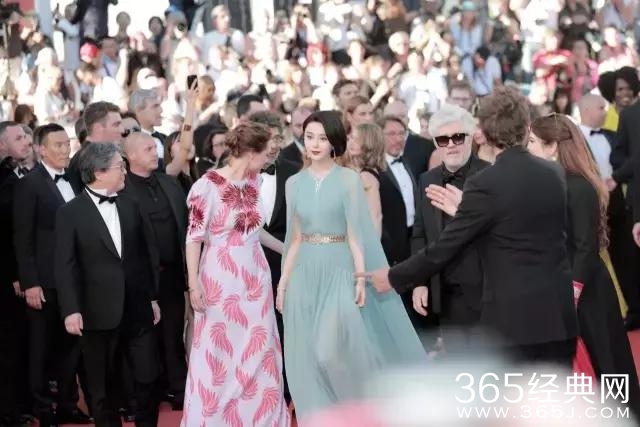 女士则需要化妆,穿正式晚装,配高跟鞋,要是服装不按要求来,保安可是不会让你进门的。看看今年范冰冰和评委主席Pedro Almodovar俩人的这一身,都没出错。▼