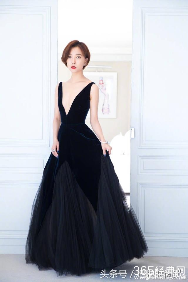 同样现身红毯的还有王珞丹,据说这是王珞丹第一次穿超低胸的拖尾礼服,这件黑色的Dior丝绒礼服穿的超美,非常有气质。