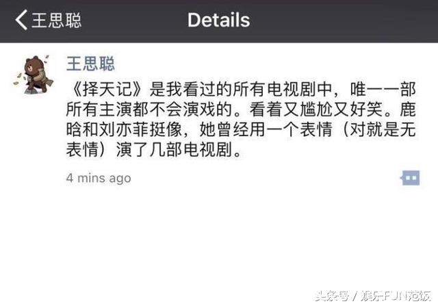 还有想起王思聪说的最近大热的一部剧择天记,主演全部没有演技。。