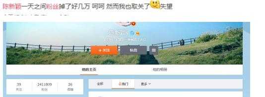 小编我相信群众的眼睛是雪亮的,有不少的粉丝都取关了陈新颖,小编今天大致看了一下大概掉了四万的粉丝毕竟就是一个真人秀出来的,粉丝的基础还不够稳定,就这样伤粉丝的心,确实容易掉粉