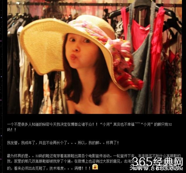 其实关于脚小,王子文曾经还在博客中写了一篇《小脚“小河”觅鞋记》,在文章中写到了自己因为脚小,选高跟鞋十分困难的问题。