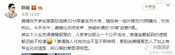 但是粉丝不同意,开始玩儿命澄清说唐嫣本人皮肤很好,不可能有斑,就是被黑的。营销号也起来带节奏,什么“普通人化完妆也不至于那样吧,黑的意图很明显”