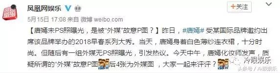 “外媒无ps高清大图”这种东西本来就是用来给群众宽心的,看看明星们没修过的图还有没有那么美,还配不配当明星。大多数关于唐嫣p图的新闻标题中心思想围绕以下几个形容词展开“惨不忍睹、黑眼圈大、皮肤差、皱纹多、雀斑重、blahblah”