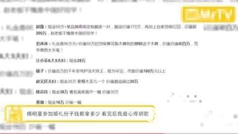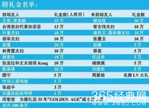 而这个名单更是夸张,这简直就是赤裸裸的炫富,看完真的好心疼胡歌啊,总不能一直当伴郎吧?不然这一年的工作要白干了。