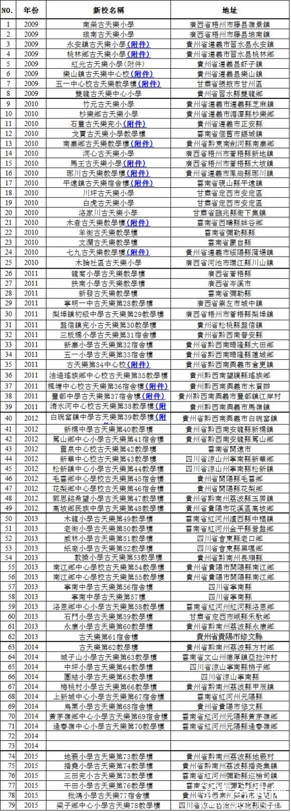 从09年开始,截至2015年底,古天乐以“古天乐慈善基金”的名义先后在云贵川等地捐赠79所学校。当我们还在打盹玩游戏的时候,几十间学校为无数孩子遮风挡雨,一切都是那么的顺其自然。如果不是2014年5月份,导演尔冬升在微博贴出一份名单,列出古天乐自2009年至2013年捐建的学校和卫生所的详细名单,大家还根本都不知道。当被媒体问及此事时,古天乐只是淡淡的一句:“我对此事不愿多谈,只希望在自己有能力时多帮助别人”。这才是真男神,大家觉得呢?